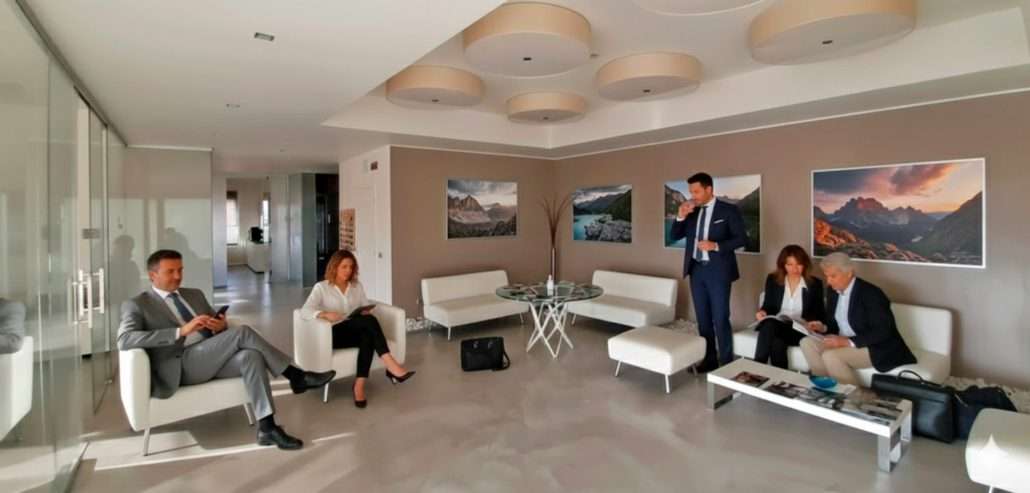 Hall d’ingresso: ampia e rappresentativa, funge da elemento di collegamento verticale grazie alla scala principale, valorizzando l’immagine aziendale.
